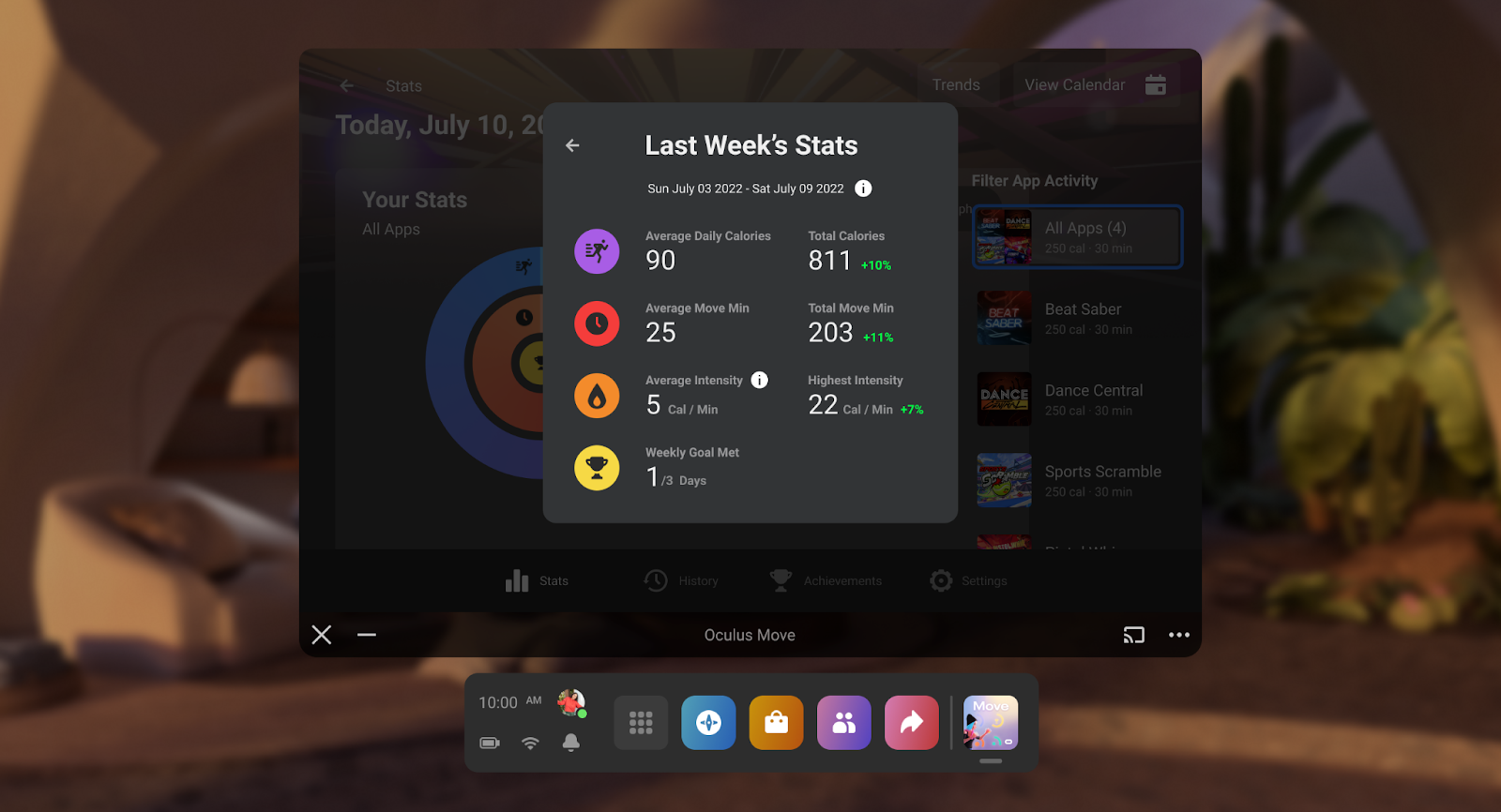 フィットネストラッカー機能「Move」に「Moveアチーブメント」を追加し、VRワークアウトの詳細な結果を記録できるようになる。セットアップ方法はこちら。
