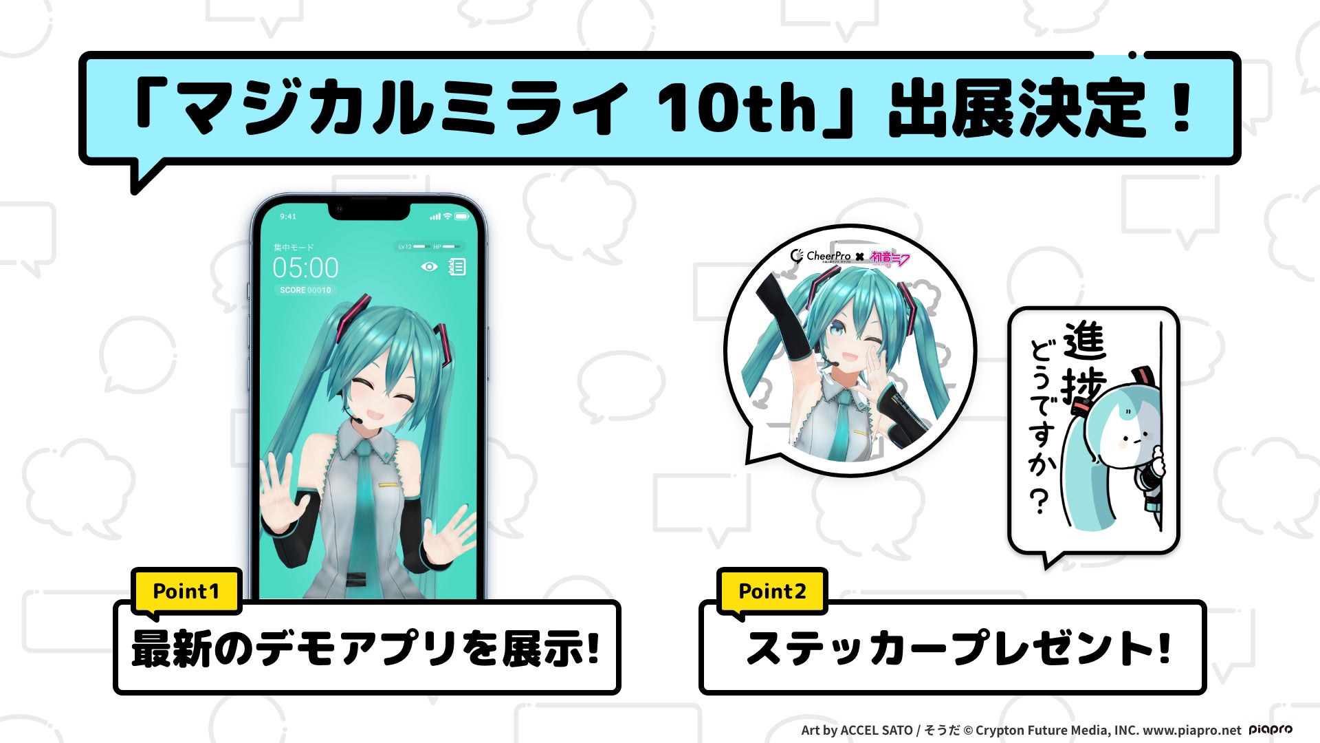 「初音ミク」の登場を記念し、開発中のデモ版アプリを「マジカルミライ 10th」の「CheerPro」ブースで公開します。