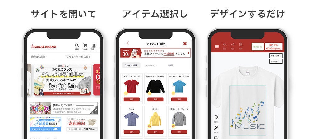 デザインした商品を登録するだけで、自分の販売ショップが完成!