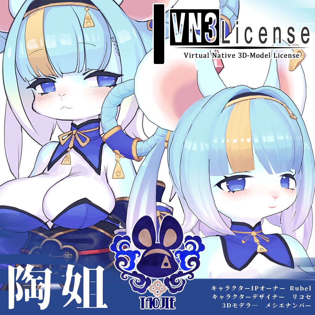 セクシーなネズミのお姉さんアバターです。デザインはイラストレーターのリコセさんが担当しており、デザインのテイストを活かすような表現方法にこだわってイラスト風の陰影を再現しているなど、全体的に高いクオリティのアバターです。