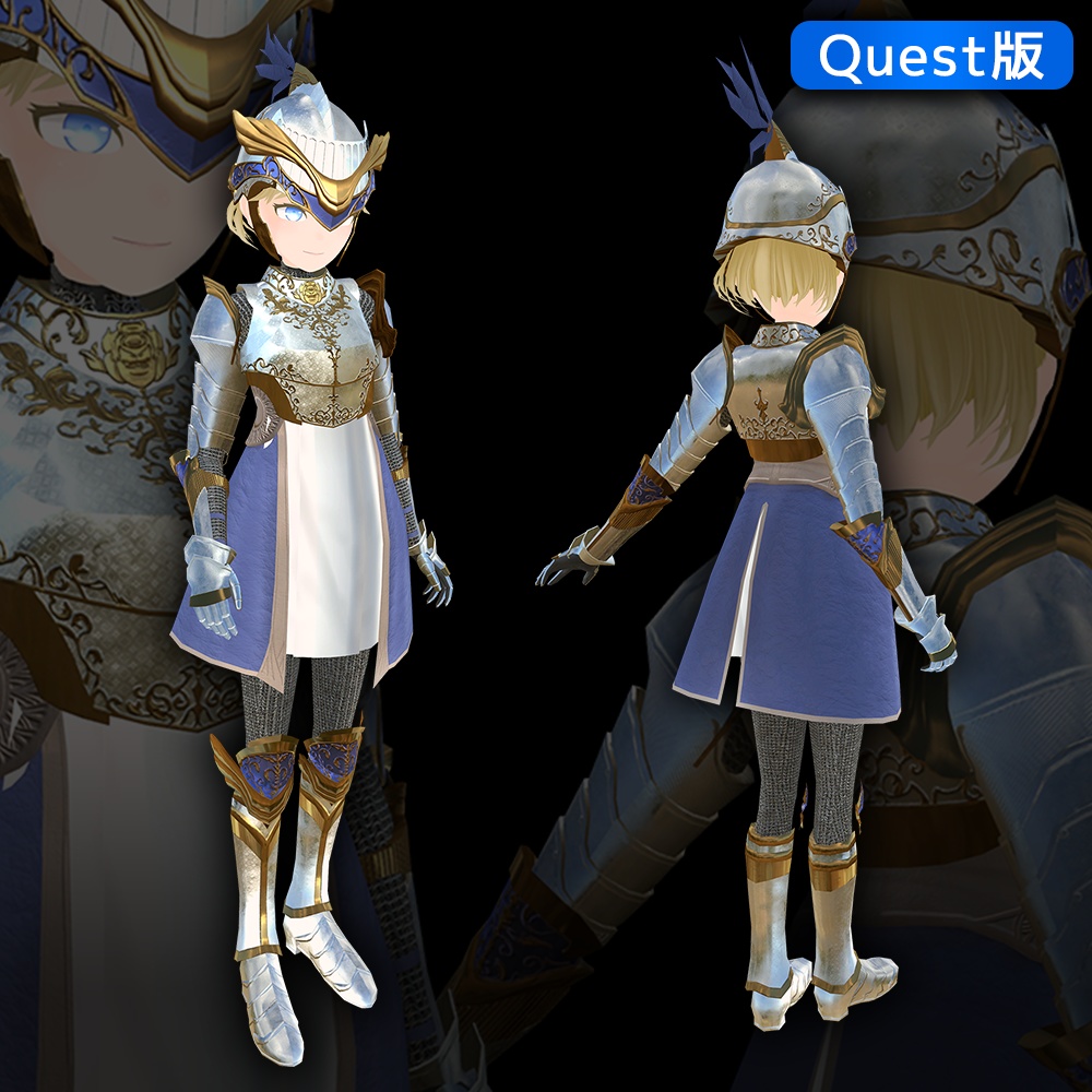 鉄薔薇の騎士ファルロサのQuest版アバターです。Quest版と言っても、必殺技を使用できたり剣と盾をExメニューでON/OFFできるなど、機能性はばっちり。黒い鎧のバージョンも同梱されているため、ファンタジー系のアバターを探している方におすすめです。