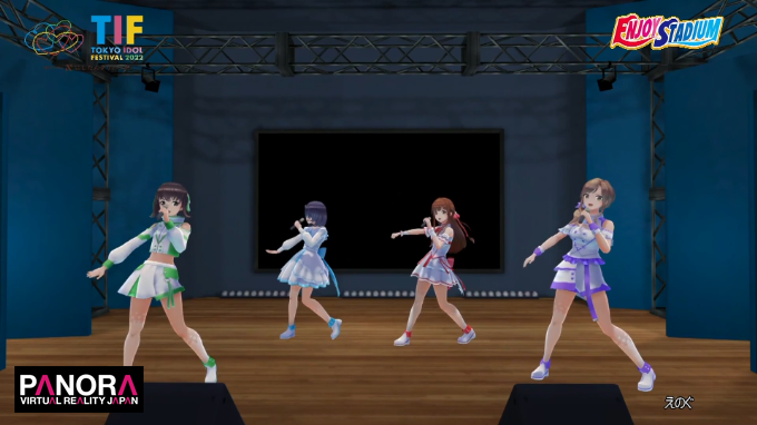 「これが私たちVRアイドルの現在地点です。アイドルが大好きで、アイドルに詳しい皆さんでも、私たちのことはあんまり知らないっていうのが現実です。だからこそ、私たちはその現実に革命を起こしたいと思っています。今よりもっと、いろいろなアイドルの形が認められて、さらに多くの方がアイドルっていう素敵な文化を好きになる。そういう未来の可能性をこの『TIF2022』でご覧いただくために、私たちはこの場所に来ました! VRアイドルのことを全然知らないという人も、今から20分ちょっと楽しんでいただけると嬉しいです!」