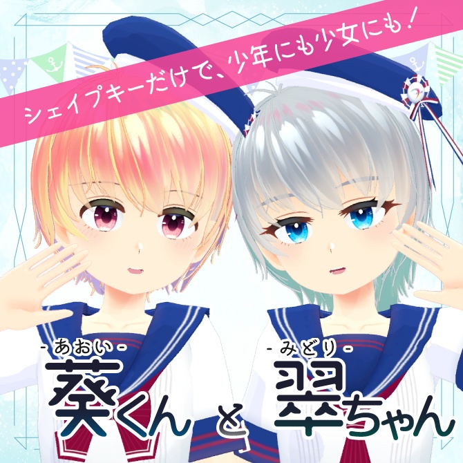 ユニセックスなセーラー服姿が魅力的で、シェイプキーの調整によって女の子にも男の子にもなれるという、一部の人に大いに刺さりそうなアバターです!