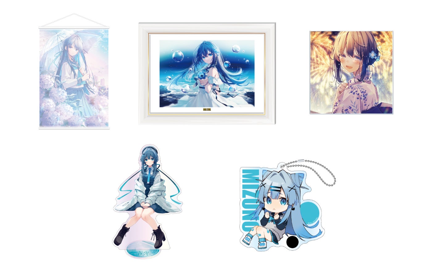 販売グッズ:複製原画、シースルータペストリー、アクリルブロック、オーロラアクリルスタンド、SDアクリルキーホルダーなど