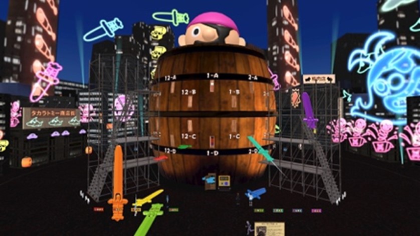 今回公開した「メタバース 黒ひげ危機一髪」では、スマホやPC、VRなどの機器から「黒ひげ危機一髪」の世界観を3D化したワールドにアクセスして、チャットや音声でコミュニケーションしながら以下の3種類のゲームを体験できる。プレイ人数は3種類とも最大12人。また、オリジナルアバターも販売する。