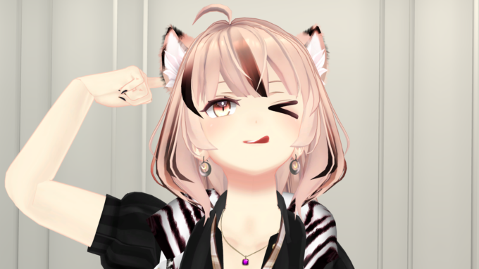 PhysBoneが設定されているため、髪や耳などをさわれます。猫耳のファーシェーダーのモフモフ感もかわいいです。