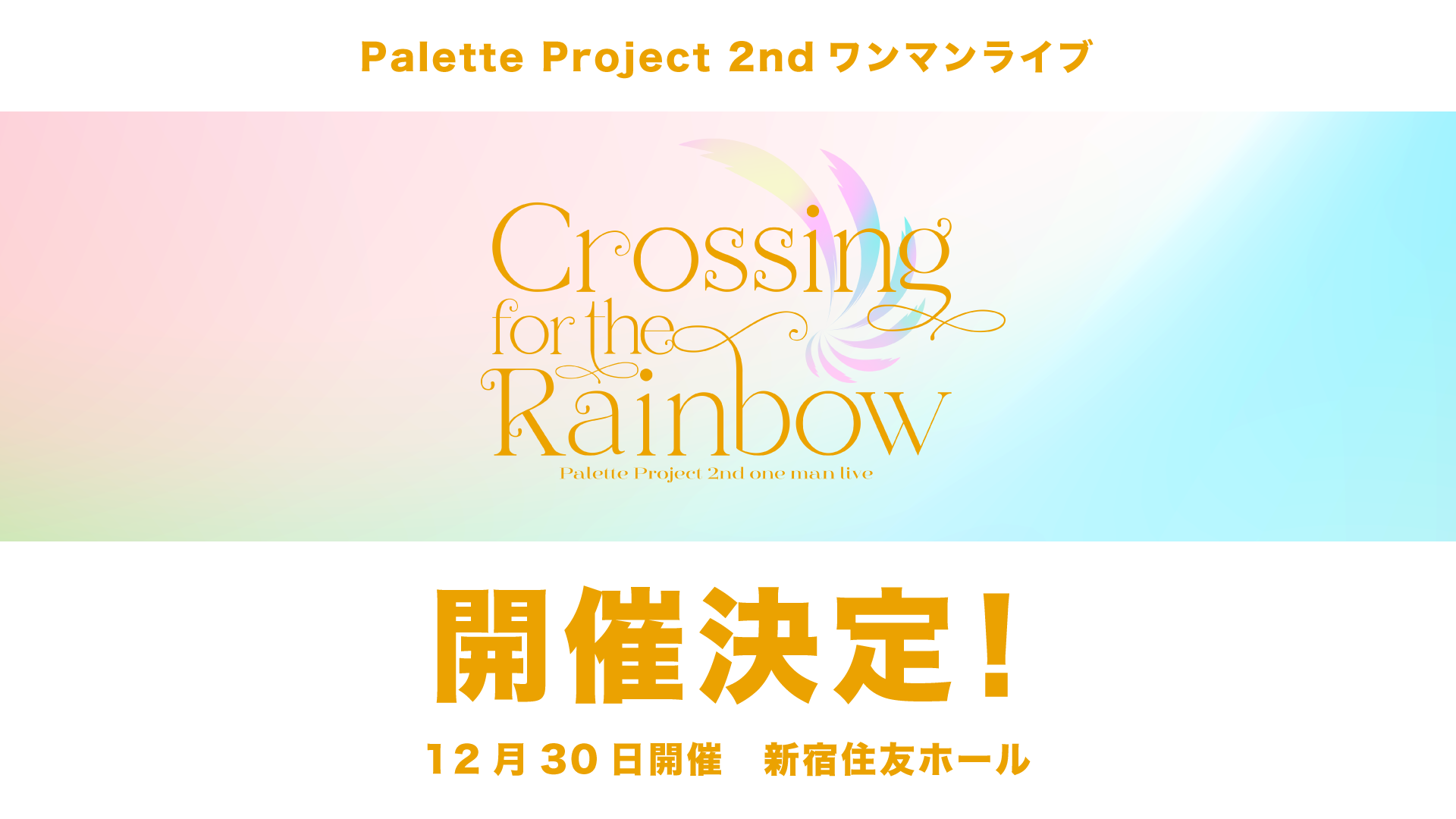 株式会社Brave group(本社:東京都港区、代表取締役:野口圭登、以下「Brave group」)の子会社であるMateReal株式会社(本社:東京都港区、代表取締役:星 崇祥、以下「MateReal」)は、同社が運営する女性バーチャルアイドルグループPalette Projectの、2nd ワンマンライブ「Crossing for the Rainbow」を2022年12月30日(金)に開催することを決定いたしました。