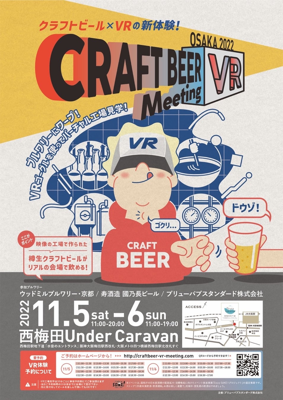 大阪府大阪市のブリューパブスタンダード株式会社は、令和4年(2022年)11月5日土曜日、11月6日(日曜日)にCRAFTBEER×VR Meeting 2022 OSAKAを開催します。