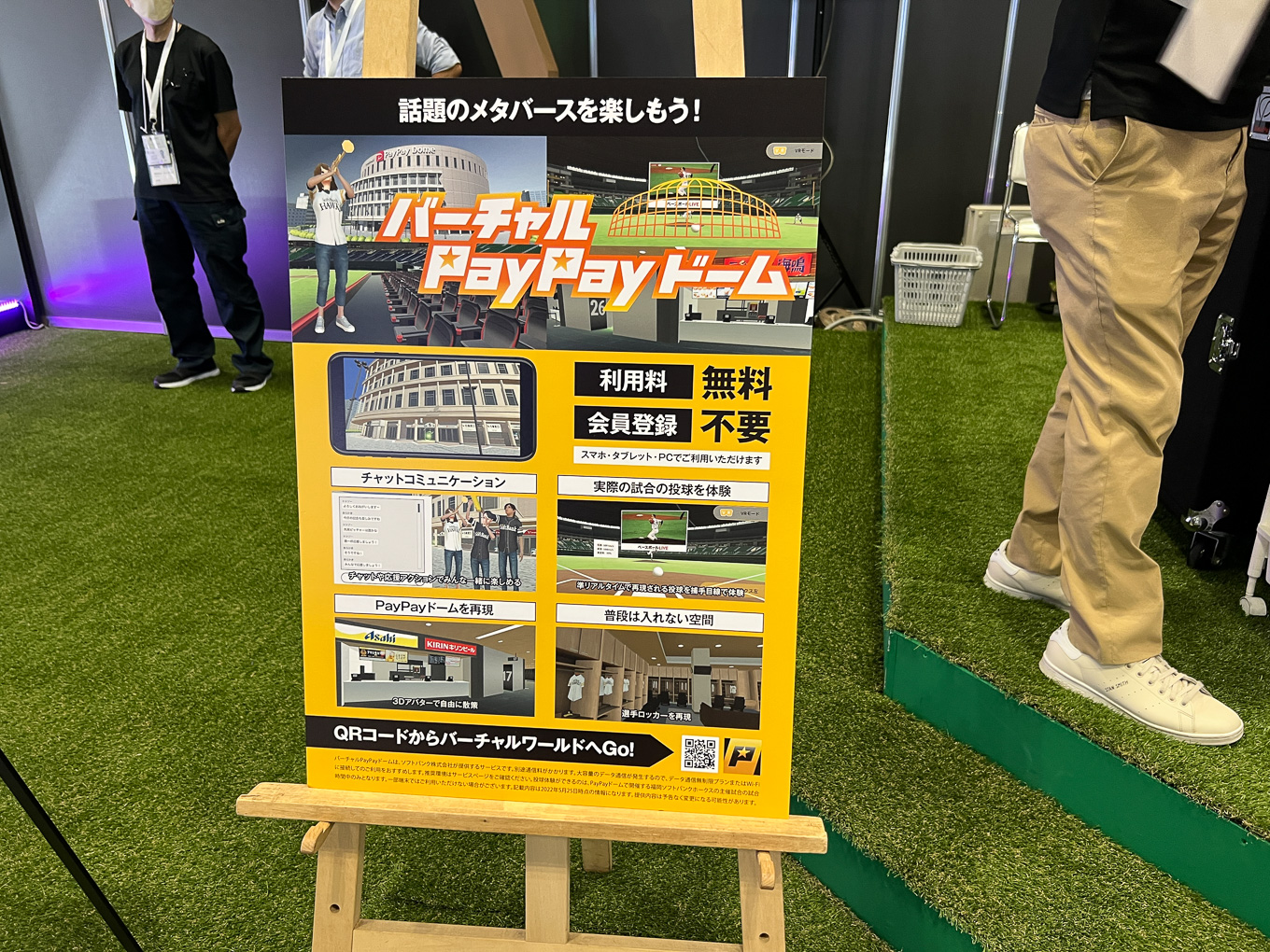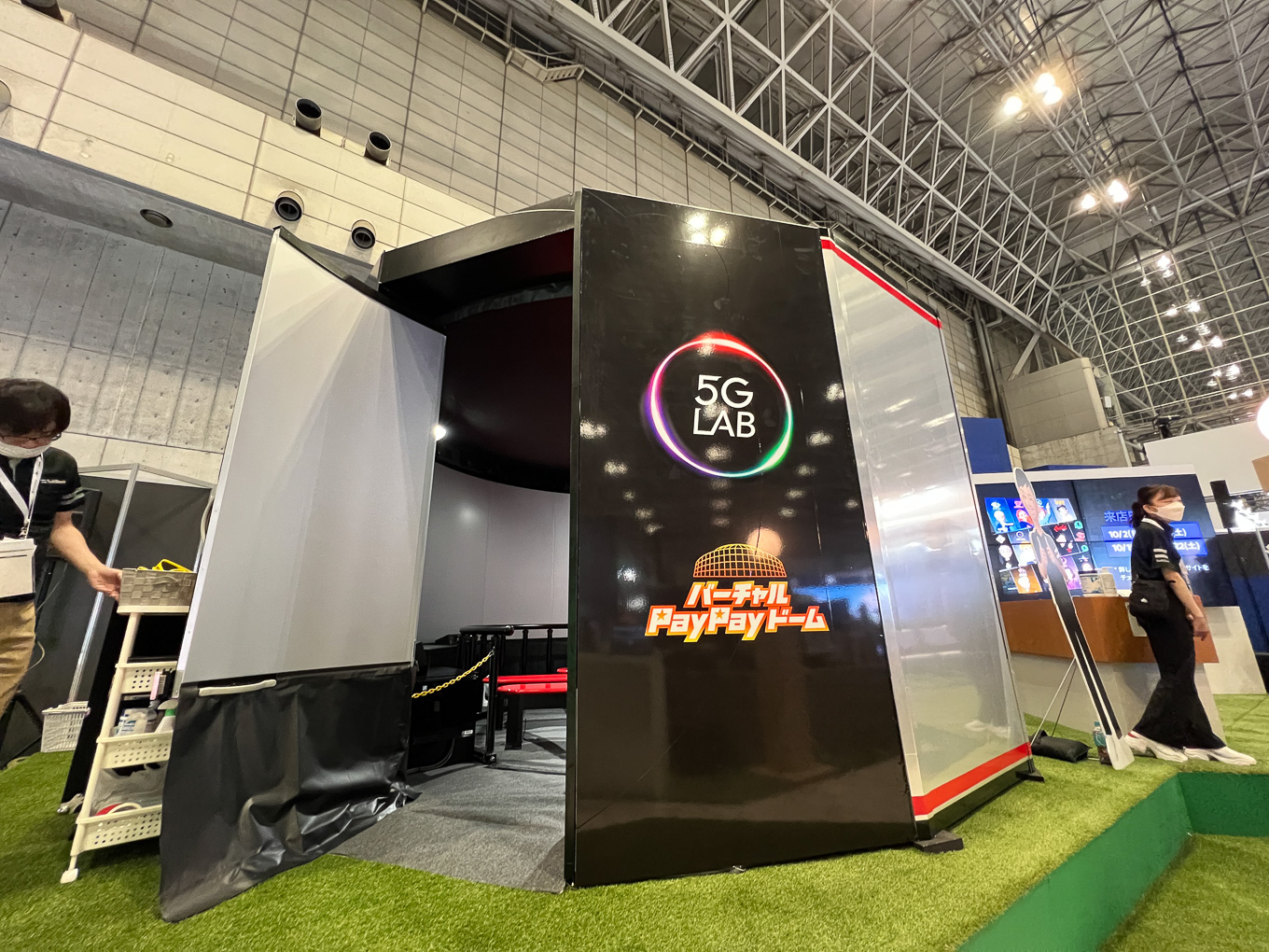 スマホやタブレット、PCで体験できる「バーチャルPayPayドーム」の一部である「バーチャル投球体験」をドーム型スクリーンで体験できるようにしていた。3Dメガネを装着し、最大7人で同時に視聴できる。VRゴーグルは、被ることに抵抗があったり、まったくの初心者が操作を覚えるのに時間がかかることもあるが、よりライトな体験でその迫力の一端を伝わるようにしている。