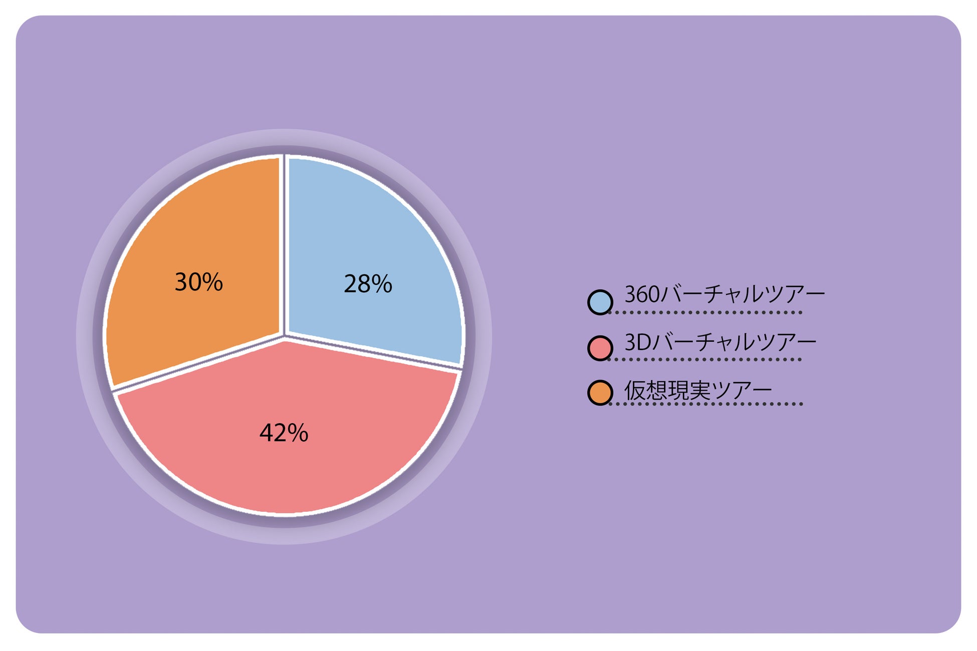 タイプ別では、360バーチャルツアー、3Dバーチャルツアー、バーチャルリアリティツアーに分類される。