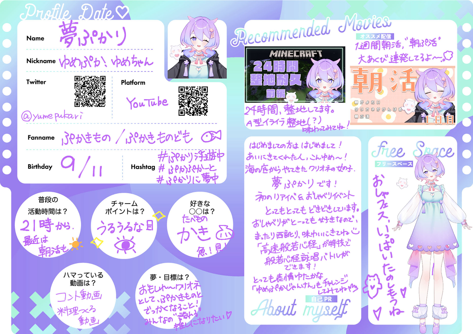 PANORAで10月29、30日に開催した、VTuberとファンが交流できるリアルイベント「わいわい!おしゃべりフェス in 品川J-SQUARE」。レポート記事に続き、本記事では会場で飾っていたVTuberさんのプロフシートを出演順で一挙紹介していきます!