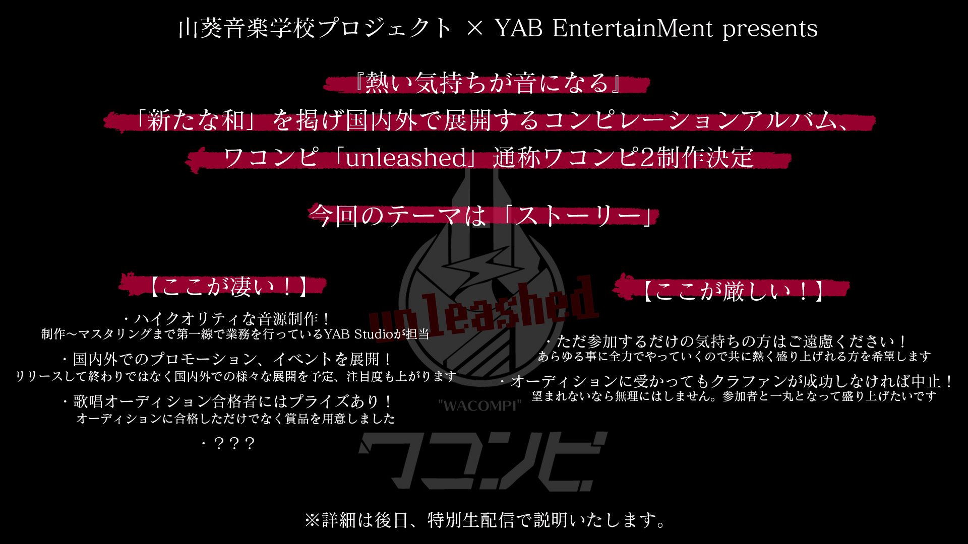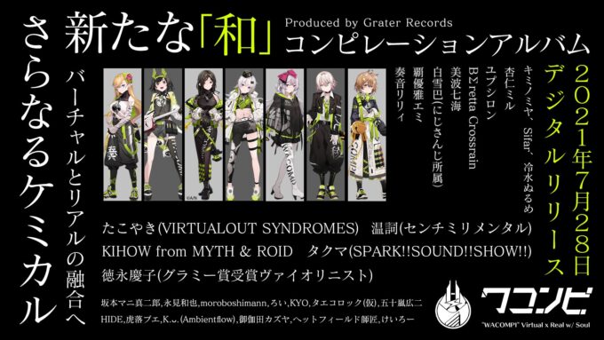 Grater Records(グレイターレコーズ)山葵音楽学校プロジェクトは10月29日、YAB EntertainMent合同会社とともに、VTuberとクリエイターによるコンピレーションアルバム 「ワコンピ unleashed」(通称ワコンピ2)制作のため、うぶごえのサイト上にてクラウドファンディングを開始した。本アルバムは2021年7月28日に「新たな和」をコンセプトにリリースされた「ワコンピ」の第2弾となる。ワコンピ2ではノージャンルを掲げ、テーマは「ストーリー」だ。