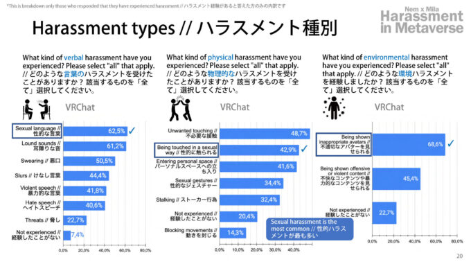 メタバースにおけるハラスメントのユーザー調査が無償公開 6割近くが経験、女性アバターで物理男性も被害に