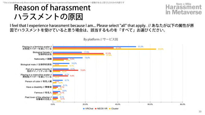 スイスの人類学者・ミラ(リュドミラ・ブレディキナ)さん、メタバース文化エバンジェリスト・バーチャル美少女ねむさんは8日、876件のユーザー調査を分析したレポート「メタバースでのハラスメント」を無償公開した。こちらのnote<の「レポートはこちら(PDF)」からダウンロードできる。