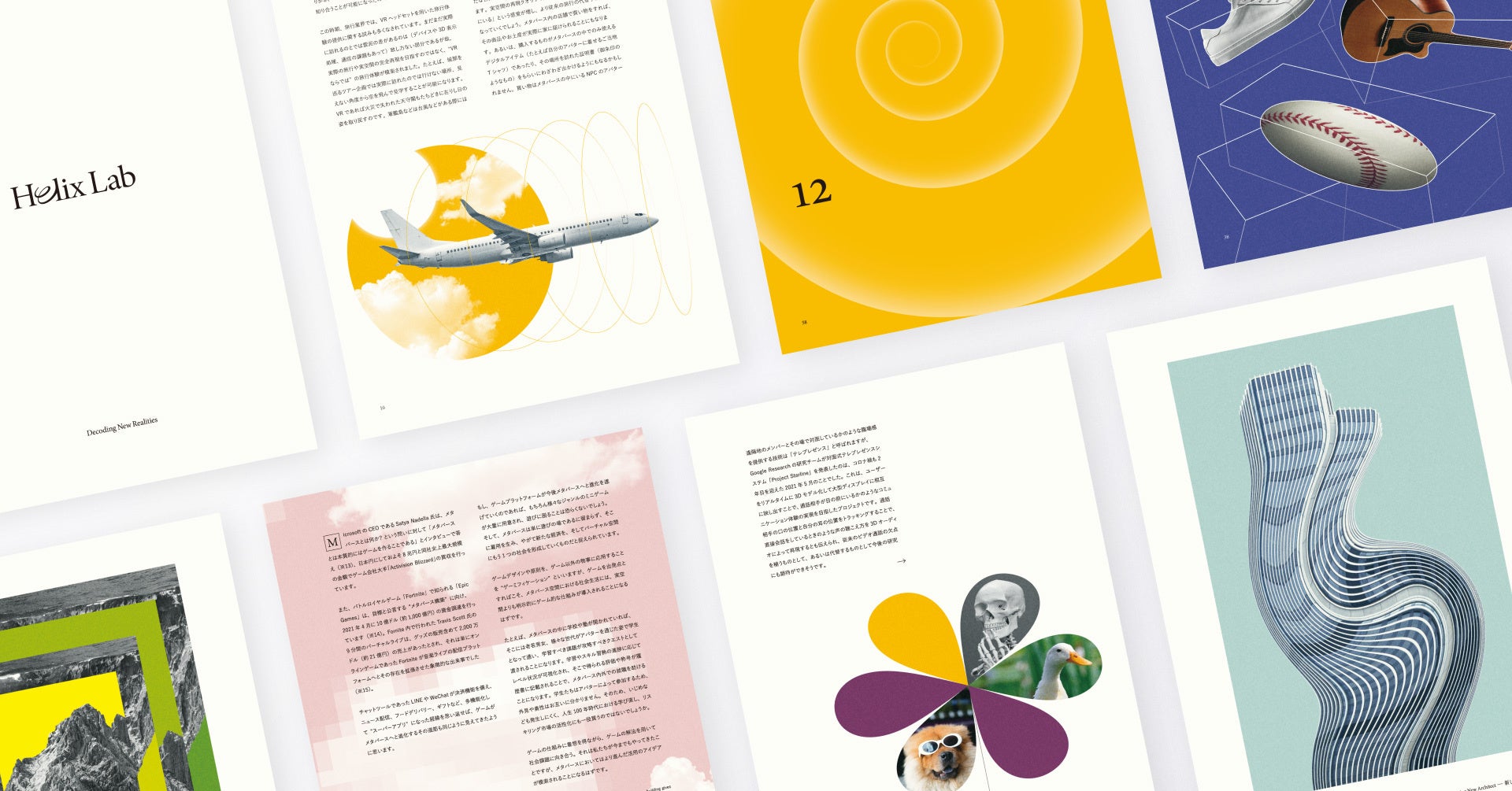 (*2) Helixは「螺旋」の意味。社会やテクノロジーの進化は同じパターンの繰り返しに見えて少しずつ変化する。それは一平面上に留まる2次元の渦巻ではなく、DNAの二重螺旋のように、サイバーとフィジカルとが絡み合いながら3次元的に新たな高みへと進化していく、という期待を込めています。タグラインの「Decoding New Realities」は、XRやメタバースなどのテクノロジーにより生まれる新たな生活を、「新しい現実」と置き、それらを紐解く活動を推進するチームであることを表しています。