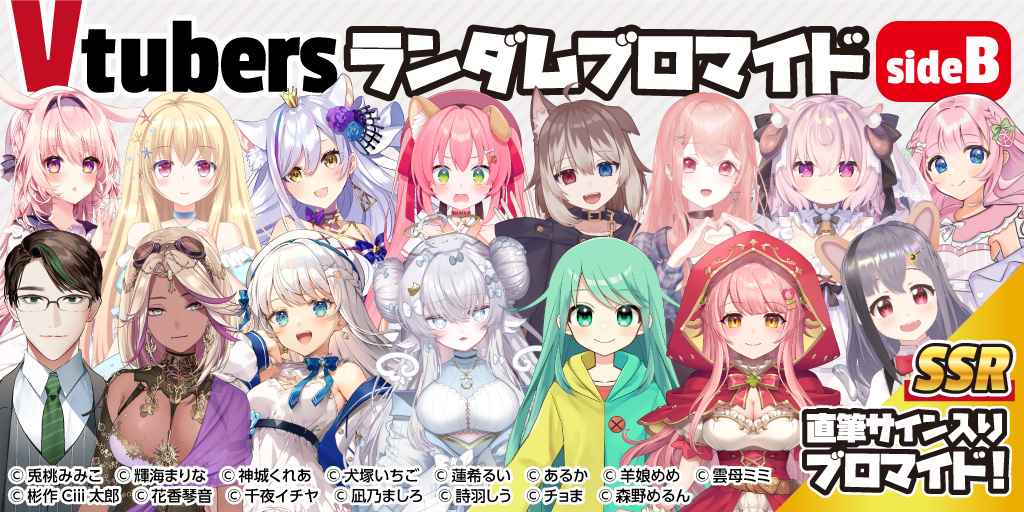 ○Vtubersランダムブロマイド sideB(全30種) ※SSRは直筆サイン入り