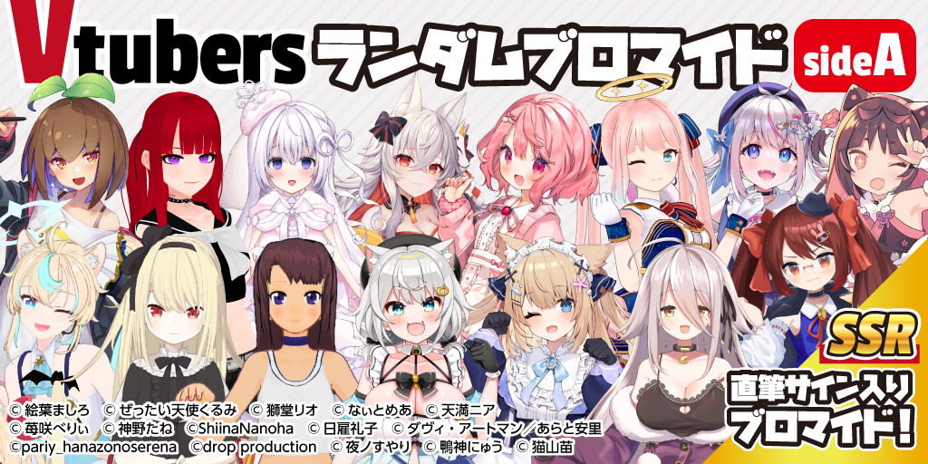 ○Vtubersランダムブロマイド sideA(全30種) ※SSRは直筆サイン入り