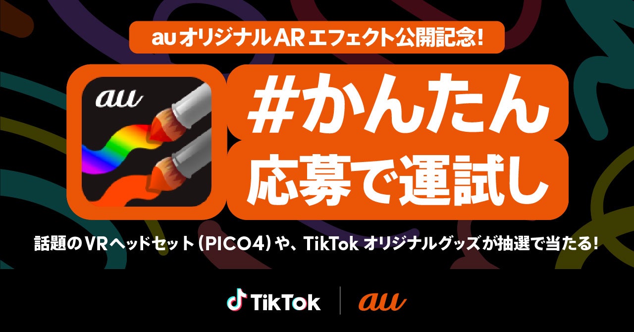 また、「au_ARペイント」の公開を記念し、2023年1月16日12:00から2月28日23:59まで、TikTokのオリジナルグッズやVRヘッドセット(PICO 4)が抽選で当たるキャンペーン「#かんたん応募で運試し」を実施します。