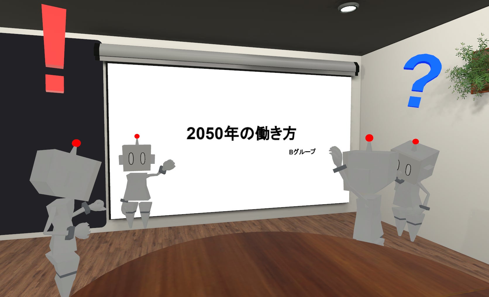 本インターンシップは、2022年12月14、16日および2023年1月13日に開催されました。インターンシップでは、当社のバーチャル空間(アクアリウムとオフィスルーム)を使用し、選考に通過した約50名の学生全員がアバターとなり、ディスカッションとプレゼンテーションを伴うグループワークを行いました。当日は、メタバースという初めての環境での実施にも関わらず、非常に活発なディスカッションが行われ、メタバースという環境がこれからの新しい働き方の手段としてのポテンシャルを十分に持つことを実証する機会となりました。参加した学生からは、「オンラインミーティングの環境とは異なり、アバターを使用することで参加者同士の距離感が近く、緊張せずにワクワクしながら参加できた」、「対面やオンラインに加え、メタバースを組み合わせた働き方がしたい」などといった感想が寄せられました。加えて、「アバターを使用することで可視的な違いによる先入観が無いため、スムーズに会話ができ意見を言いやすい環境だった」といった感想が多数寄せられました。アバターを使用したコミュニケーションでは、人の目に見える違いを排除することができるため、相手の発言内容などのアウトプットにより集中して物事を判断できる環境であることが、これら参加者の感想に繋がったと考えられます。