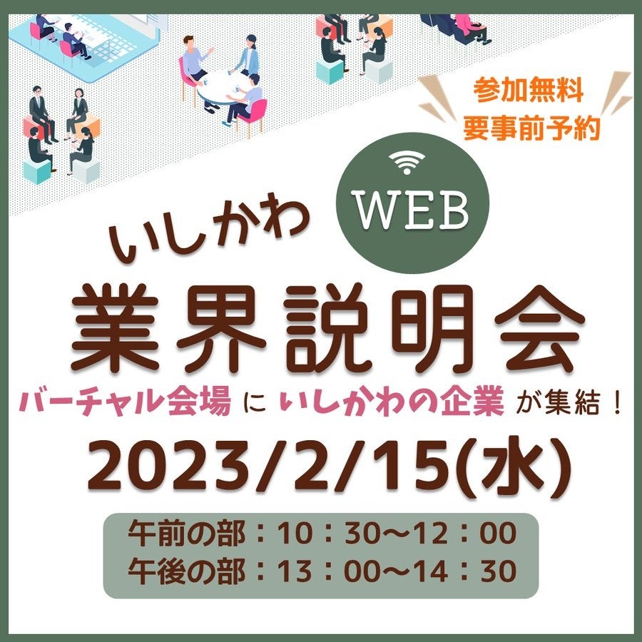 石川県主催の新卒学生向け就活イベント「いしかわWEB業界説明会」が2023年2月15日(水)に、オンラインイベント向けのバーチャル空間「reBako.io」で開催されます。