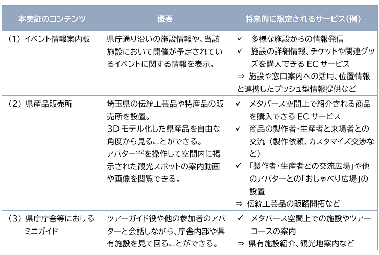 実証内容: 以下の各コンテンツの試用を通して、「技術的・運用的」観点および「効果」の観点から評価・検証を実施