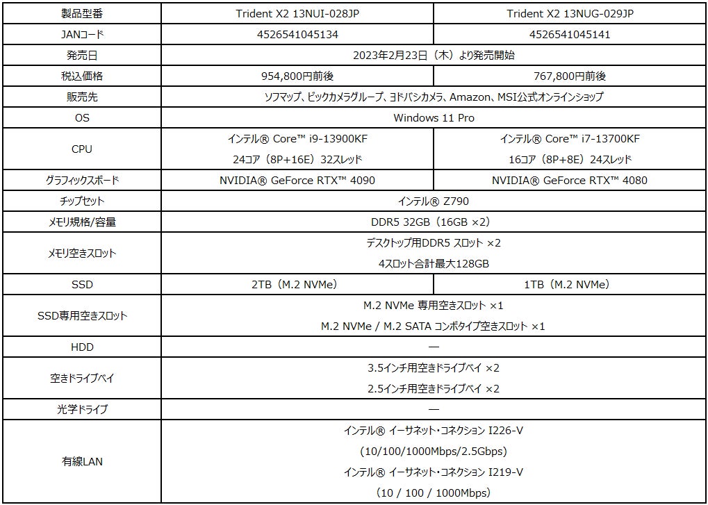 製品ページ:https://jp.msi.com/Desktop/Trident -X2-13NUG-029JP さらに、発売記念キャンペーンとして上記いずれ