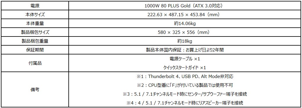 RTX ™ 4090、大容量かつ超高速転送な2TB SSDを搭載しております。の増加・高効率コアの強化を行い大幅な性能向上を実現した第13世代インテル® Core™ i7-13700KF、前世代の同クラスと比較2~3倍の性能を発揮する上位なグラフィックスカードNVIDIA® GeForce
