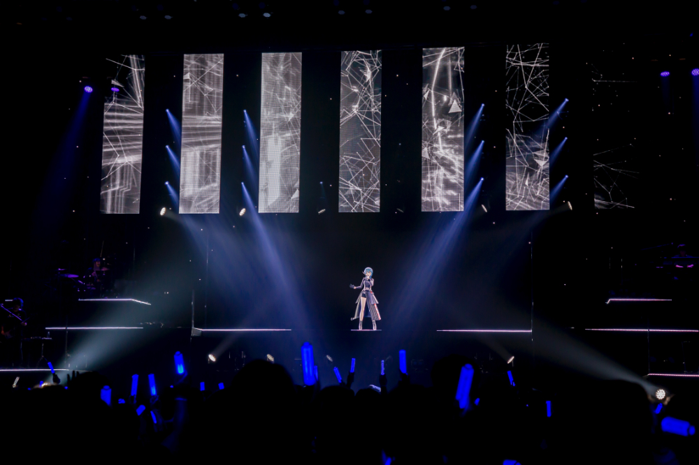 続く「7days」は、VRゲーム「DYSCHRONIA: Chronos Alternate」のシリーズテーマソング。様々な姿の星街さんが登場する映像演出とともに謎めいた妖しさも感じるが、キャッチーで華やかなステージに会場の雰囲気もガラリと変わったようだった。