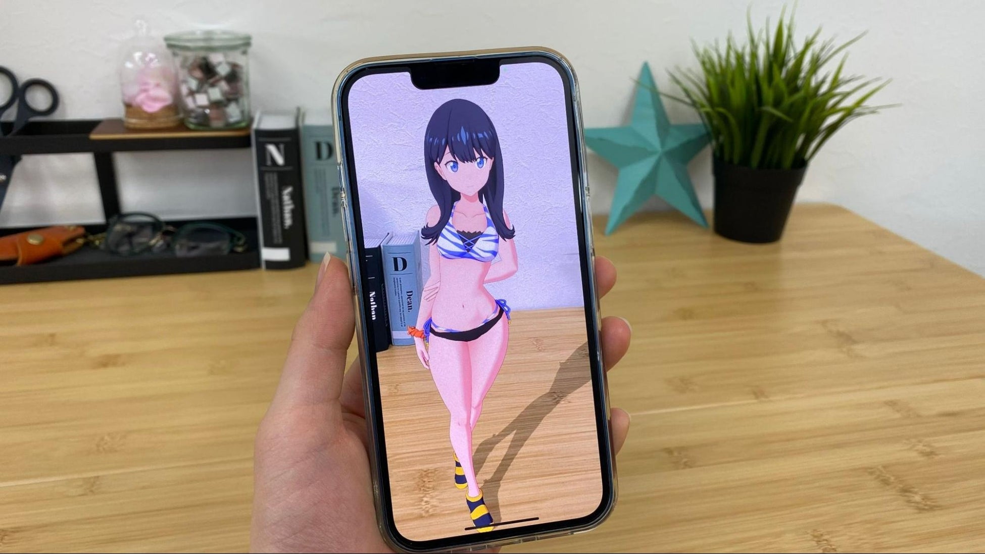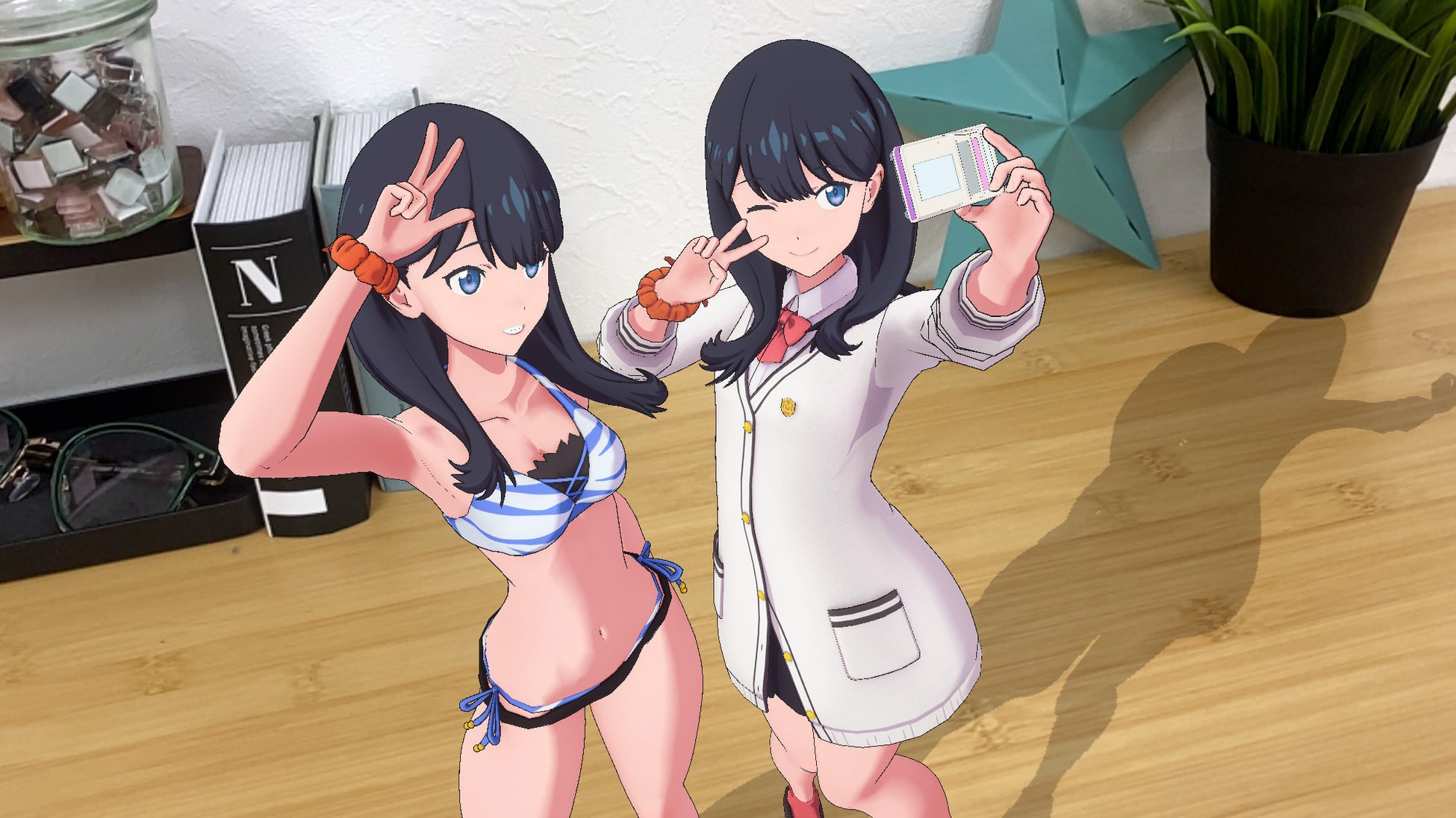 デジタルフィギュアは、場所を問わず好きな場所にキャラクターを配置でき、ポーズ・大きさ・表情など細かい調整まで可能です。自身の好みに調整して、現実世界を背景にし、まるでキャラクターがそこにいるかのような演出で鑑賞、撮影することができます。デジタルフィギュアは付属品だけでなく、自身が所有する小物や家具(リアルアイテム)と合わせてもお楽しみ頂けます。