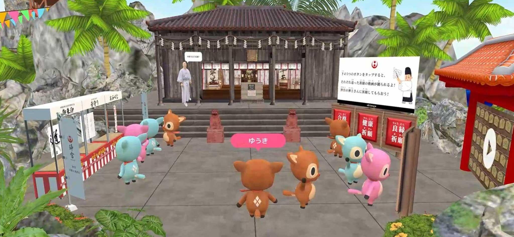 ワールド内では沖縄にある琉球八社の一つ、沖宮が再現されており、神社での参拝、おみくじ体験、絵馬コーナーや祈願動画を観ることができます。