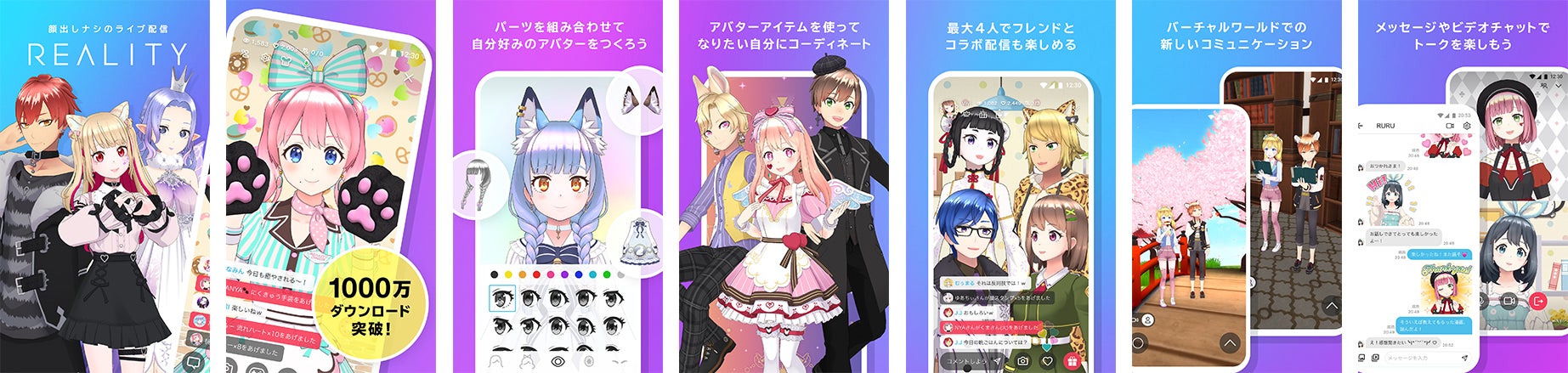 「REALITY」は、スマートフォン向けメタバースであり、スマートフォン一つで自分だけのオリジナルアバターを作成してライブ配信による交流からゲームまで楽しめるコミュニケーションプラットフォームです。「ワールド」機能でバーチャル空間の中を自由に歩き回り、アバター同士で交流することが可能です。
