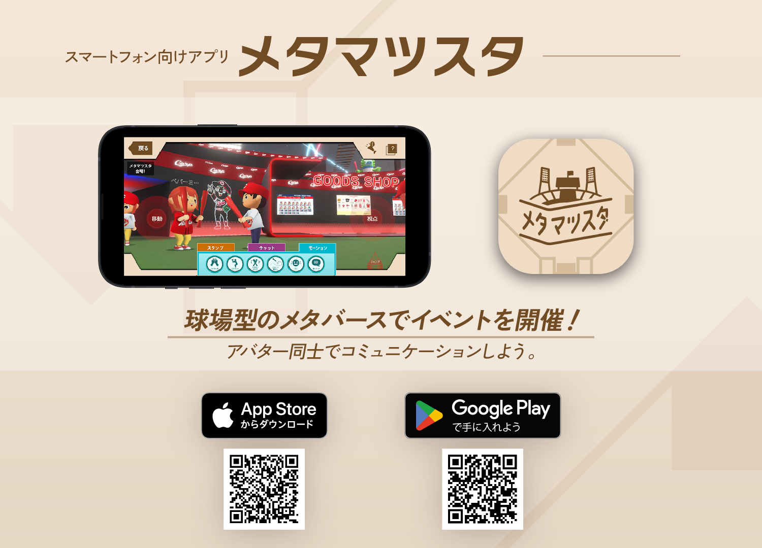 毎試合約1,000人のカープファンが集うファンコミュニティアプリ「メタカープ(※3)」の展開のひとつとして、ビーライズと広島テレビが共同開発した「メタマツスタ」は、広島から多くのメタバース利用例を生み出す独自のプラットフォームとして完成・拡張しています。