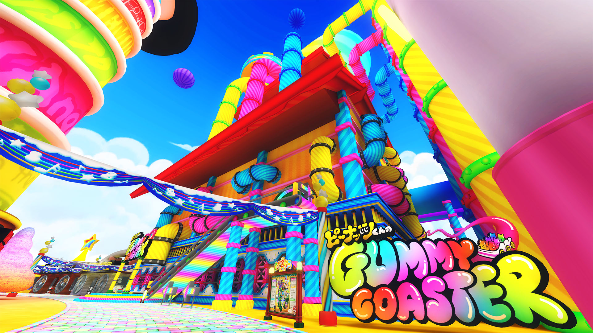 MUSIC AREAにある、ピーナッツくんのオリジナル曲「グミ超うめぇ」のMVに出てくるコースターがオリジナルのアトラクション。音楽を聴きながら虹色のレールに乗って園内を駆け巡る。