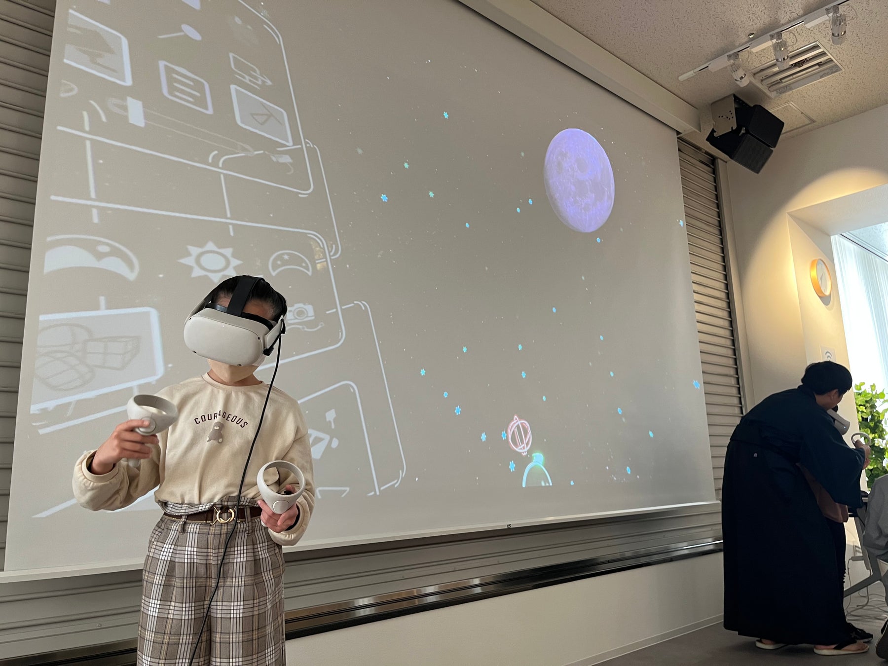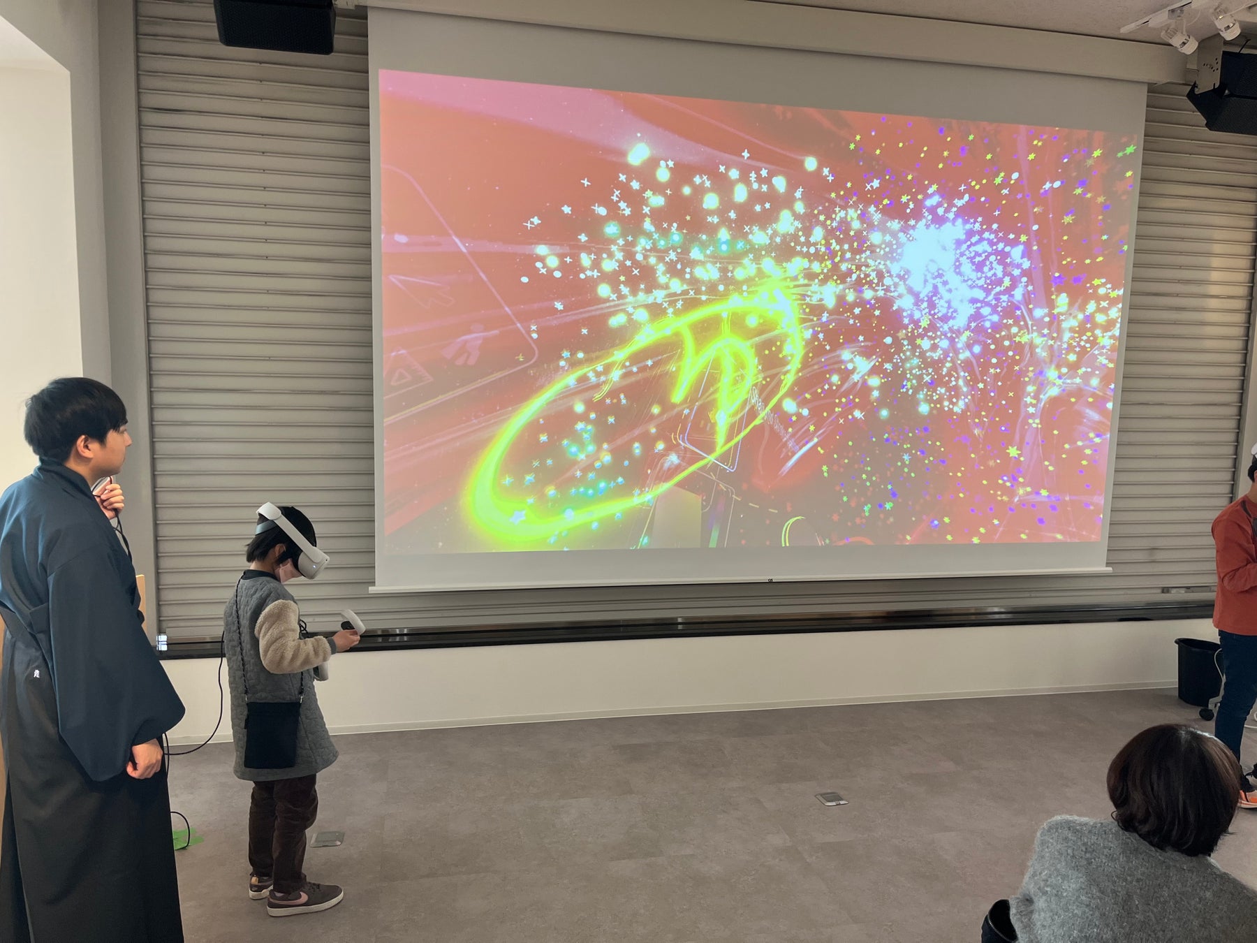 「NAGASAKI MIRAI PORT @DS Branch」の第1回は2023年1月21日(土)に開催されました。テーマは「VRの世界をたのしく体験しよう!」で、VRアーティストのひよこ師匠さんとSaRaNさんを東京より招待し、目の前で圧巻のパフォーマンスを体験してからそれぞれの子どもたちがVRヘッドセットを被り思い思いに自由にVRアートを楽しむという内容でした。