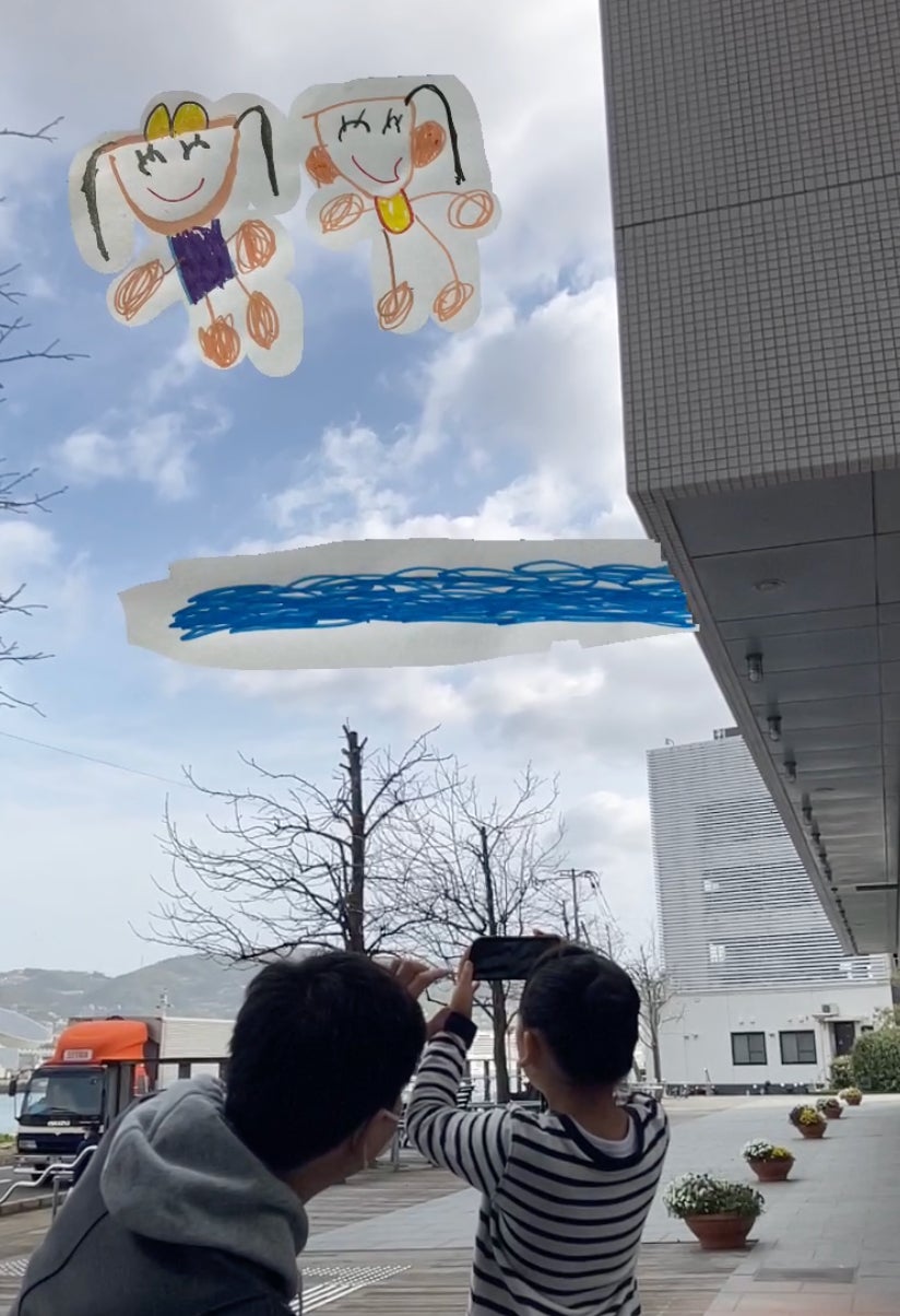 「NAGASAKI MIRAI PORT @DS Branch」の第2回は2023年3月2日(土)に開催されました。テーマは「ARの世界をたのしく体験しよう!」で、国内でも有数の技術を持つARに特化したスタートアップ、株式会社Psychic VR Labのアプリ”STYLY”の技術を活用した「AR空中らくがき」を用いて子どもたちが描いた創造性あふれる絵を青空に映して楽しむという内容でした。