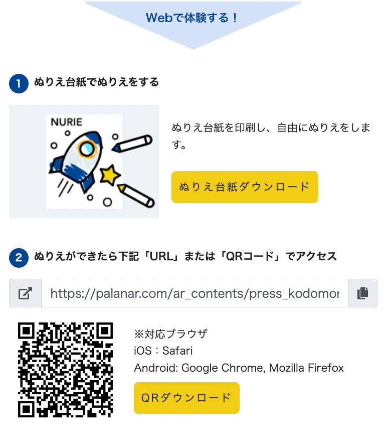 教育分野、お子様向けの企画やイベント、商品プロモーションなどで活用することができて、Webブラウザのみで体験可能です。親子で楽しむことや、キャラクターに興味を持ってもらうきっかけとして活用いただけます。