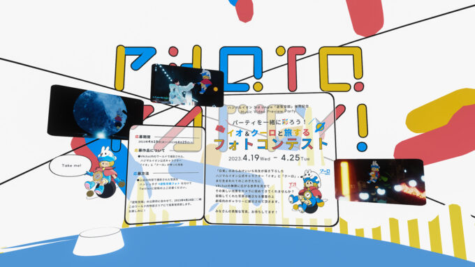 この「イオとクーロ」を着用した上で、VRChat上のさまざまなワールドで撮影された写真を投稿するフォトコンテストを4月19日から25日まで実施。オリジナルアバターはコンテスト期間のみ着用できるため、「イオとクーロ」でいられるのはこの時だけになる。ぜひ、この瞬間の想い出を残すために写真を撮りに行ってみよう。