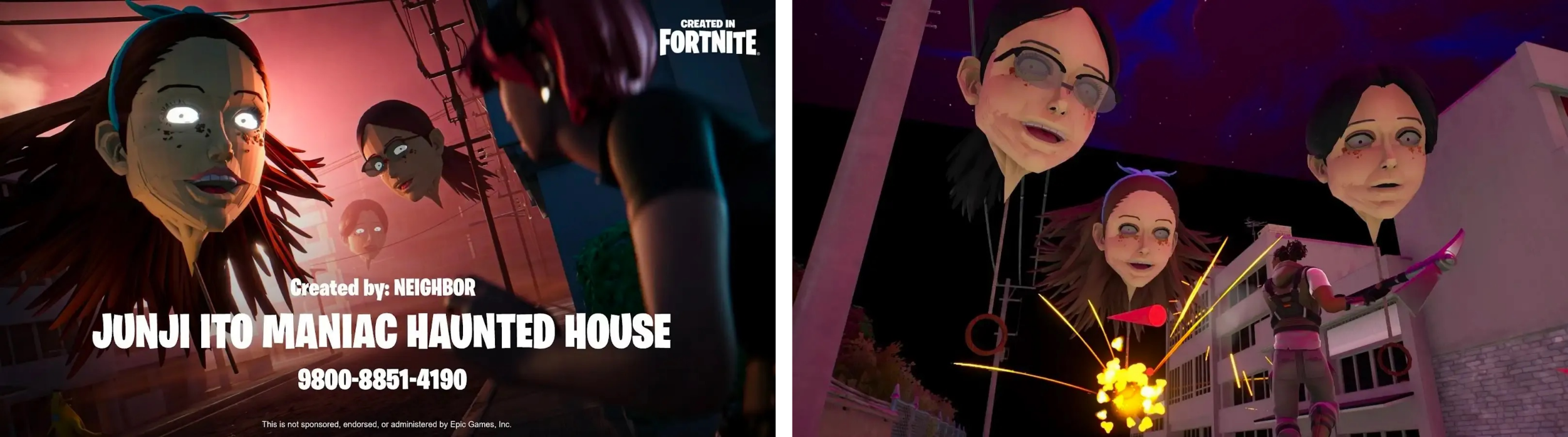 (※)2023年3月1日NEIGHBORリリース『Netflixアニメ伊藤潤二『マニアック』を再現したメタバースお化け屋敷がフォートナイト内で50万来場者を突破!』 https://prtimes.jp/main/html/rd/p/000000013.000111821.html