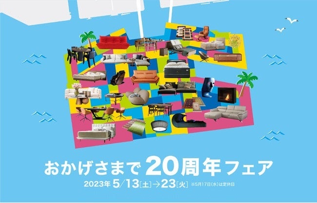 大丸松坂屋百貨店が運営する大丸インテリア館「ミュゼ エール」(所在地:六甲アイランド 神戸ファッションマート2階)は、約4,300㎡の売場面積を活かし、国内外から取り揃えた約100ブランドの上質な家具を展示、2003年のオープン以来ここでしか体験できない価値を提供してまいりました。誕生日を迎える5月13日(土)~23日(火)の期間、特別商品やプレゼントを用意し、20周年記念キャンペーンを実施いたします。 URL:https://www.daimaru.co.jp/musee_air/