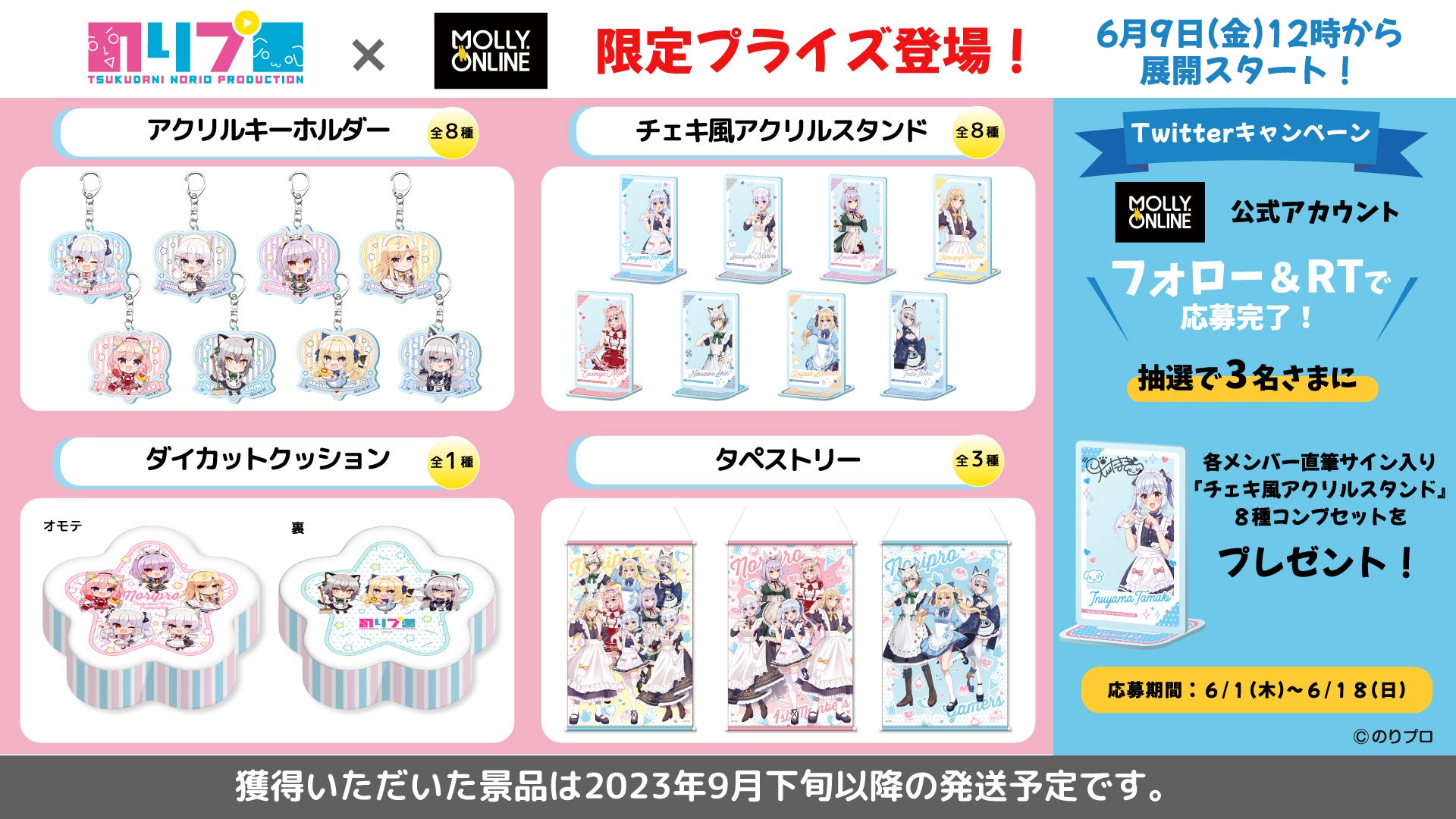 「のりプロ」×MOLLY.ONLINE コラボ第三弾「のりプロ」所属VTuber描き下ろしイラスト限定プライズ6/9正午から展開