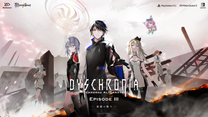 MyDearestは15日、VR捜査アドベンチャーゲーム「DYSCHRONIA: Chronos Alternate」(ディスクロニア: CA)の「Episode III -楽園の眠り-」を7月14日に発売すると発表した。Meta Quest 2版とPlayStation VR2版を用意し、価格は前者が1490円、後者が1760円(ともに税込)。