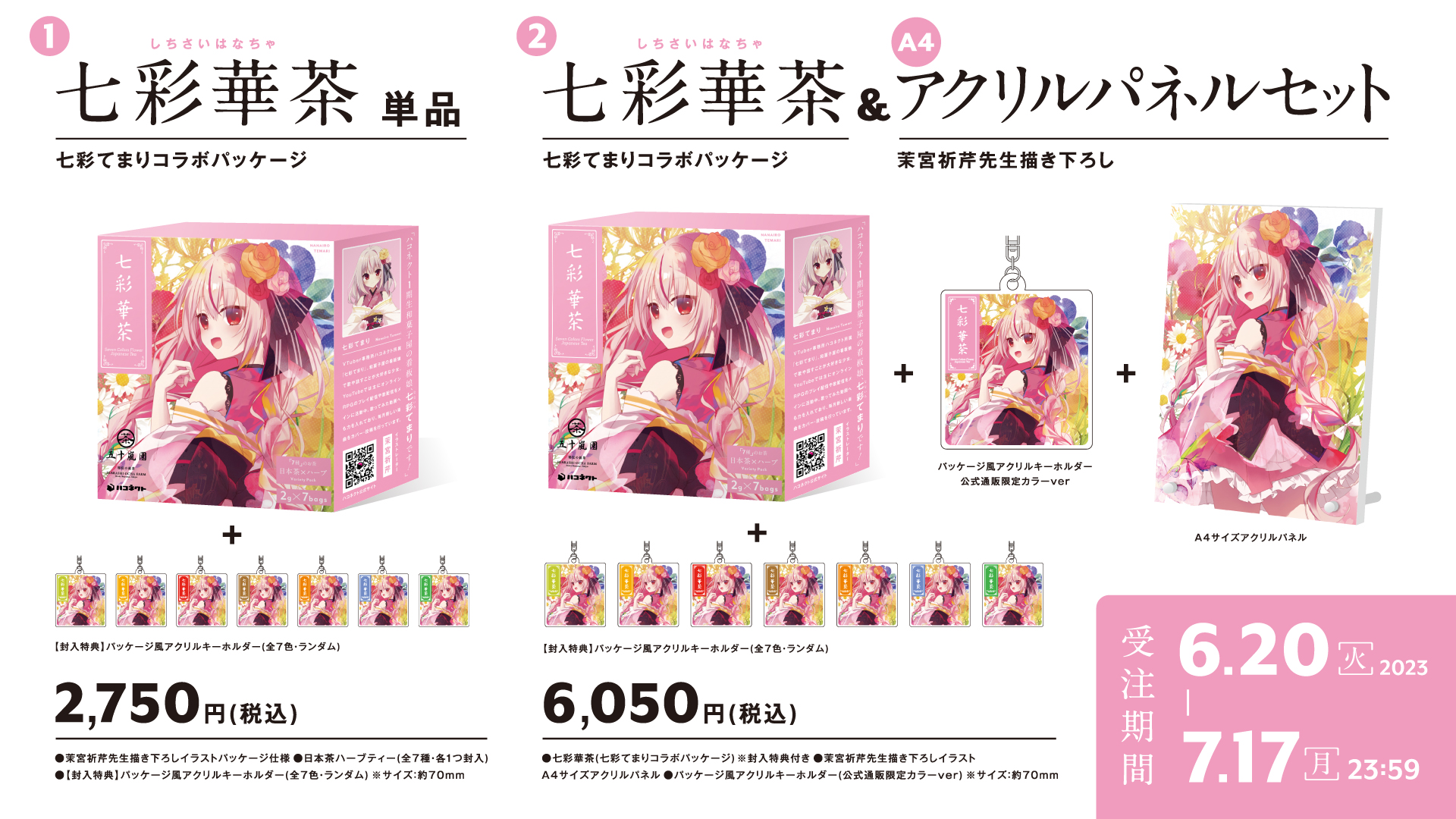 ●七彩華茶(七彩てまりコラボパッケージ)&茉宮祈芹先生描き下ろしA4アクリルパネルセット