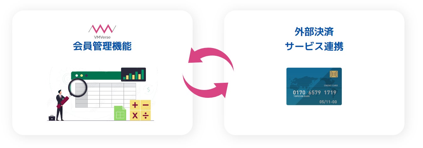 VMVerseに標準搭載されたバーチャルショッピングモールパッケージでは、外部決済サービス(Stripeなど)との連携を標準で利用可能です。使いやすい画面でクレジットカード決済を安全に利用することができます。また、高度なセキュリティ対策を導入しており、SSL暗号化や不正検知システムなどによって顧客のデータを保護します。