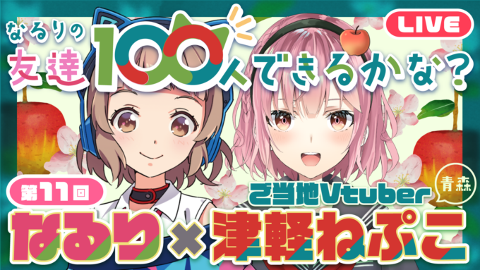 進研ゼミ公式VTuberのなるりは「なるりの友達100人できるかな?」の第11回目生配信を7月7日19時からYouTubeで行うと発表した。今回からは趣向を変え、 ご当地VTuberを迎えた全国ツアー編というものが開始される。ゲストは青森県のご当地VTuberの津軽ねぷこを迎え、ご当地ご飯を食べながらディープだけど役に立つ青森の情報をトークする。