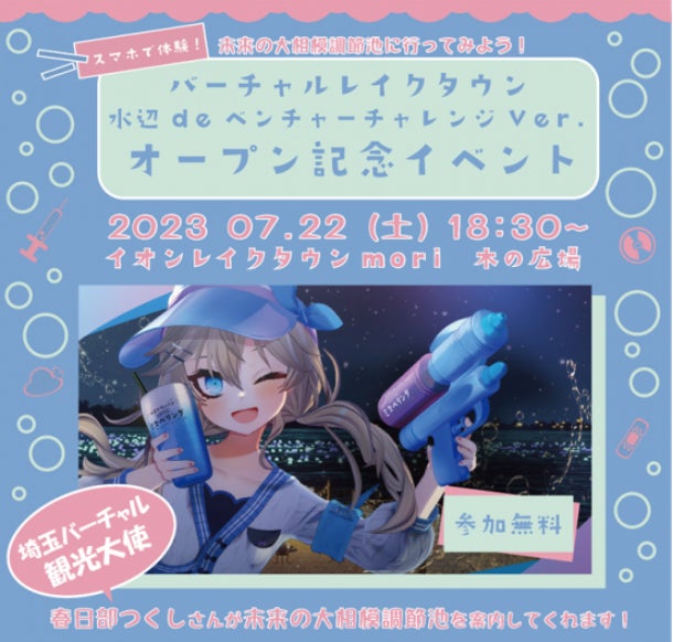 これを記念して、7月22日(土)に越谷レイクタウンで、埼玉バーチャル観光大使である、春日部つくしさんにもご協力をいただき、オープン記念イベントを開催します。イベントでは、参加者がメタバース空間内で新たな水辺空間を自由に探索できます。