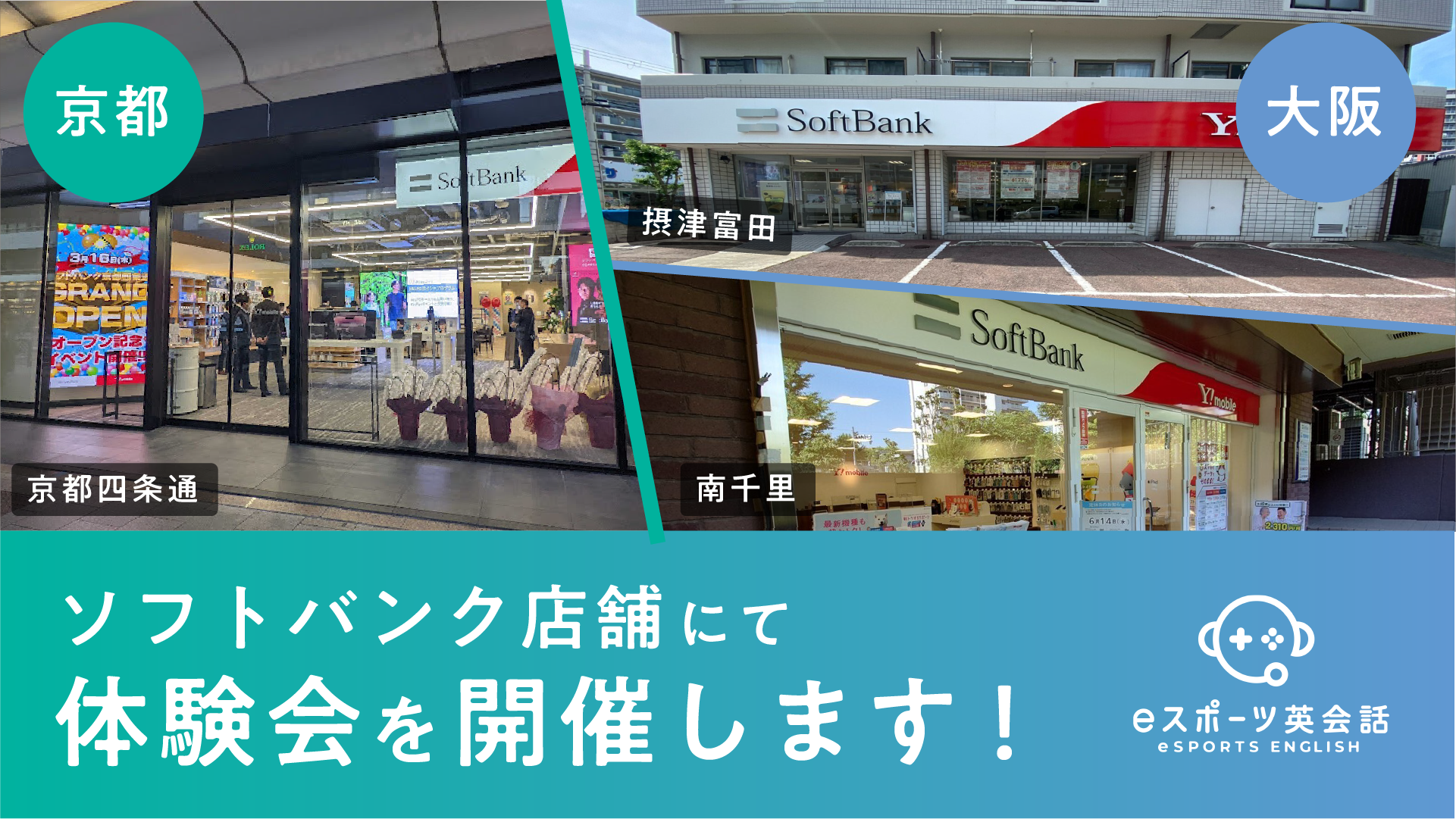eスポーツを活⽤したメタバース教育スタートアップ企業のゲシピ株式会社(本社:東京都千代⽥区 代表取締役:真鍋 拓也、以下「ゲシピ」)は、2023年8⽉2⽇(水)から8⽉11⽇(金)までと8⽉23⽇(水)から8⽉31⽇(木)までの19日間、ソフトバンク南千⾥、ソフトバンク摂津富⽥、ソフトバンク京都四条通の3店舗にて、ゲームの世界で学ぶ世界初(※1)のオンライン英語コミュニケーションレッスン「eスポーツ英会話®︎」の体験会を開催することを発表いたします。