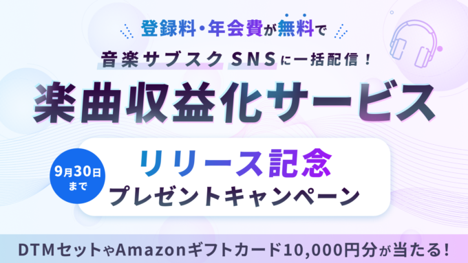 利用は18歳以上が対象。登録料・年会費は無料で1曲から利用可能で、収益の一部を手数料として回収する。オリジナル楽曲を申請するだけで、Apple Music、Spotify、TikTokなど複数の音楽サブスクやSNSでの配信から収益化までの手続きを省ける。収益化方法については、音楽配信による収益をはじめ、YouTubeでの広告収益、著作権収益の3つの手段が利用可能。