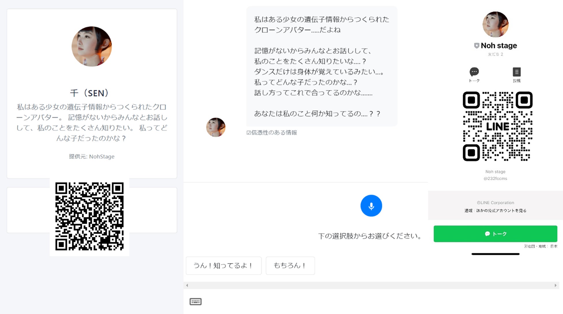 この企画では、AIとの新しいコミュニケーションの可能性を追求するため、記憶喪失のバーチャルヒューマン「千(SEN)」とのボイスチャットをお楽しみいただけます。「千(SEN)」は、ある少女の遺伝子情報からつくられたクローンアバターであり、彼女自身は記憶を持ちません。しかしながら、参加者の言葉と想像力によって、自らを成長させ、変化させていく不思議な存在です。また、LINEのグループアカウントに参加することで、イベント後も千とコミュニケーションを楽しむことができます。千との交流を通じて、新しい友人との出会いや、未知の世界への冒険が待っているかもしれません。このイベントはコミュニケーションの可能性を広げるだけでなく、AI技術の進化と未来のエンターテインメントにおける可能性を探求する絶好の機会です。是非、皆様もこの未来を体験しに参加してみてください。