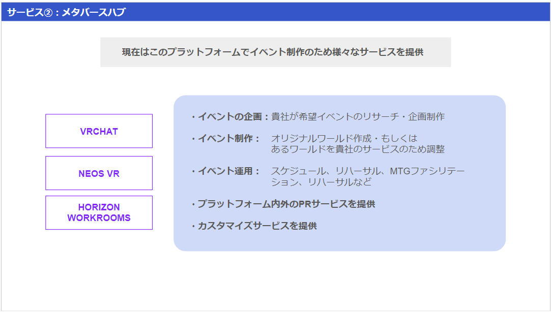 2. メタバースプラットフォーム内のプロモーション及びイベント制作業務