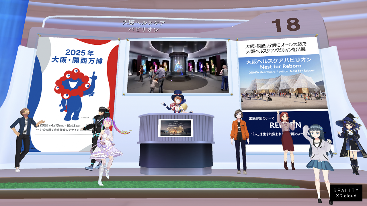 METAVERSE EXPO in REALITYには、2025年大阪・関西万博において大阪府市が産学官民で連携して出展する「大阪ヘルスケアパビリオン」について多くの若い方々に知っていただきたく、出展させていただきました。テーマは「REBORN」。“人は生まれ変われる”“新たな一歩を踏み出す”を実現するパビリオンを目指しています。
